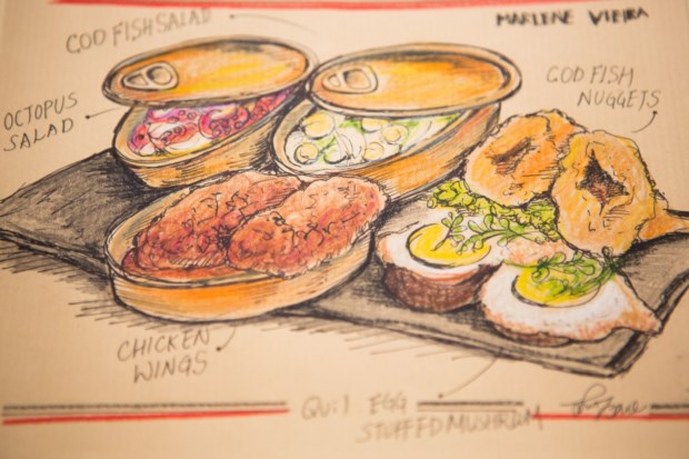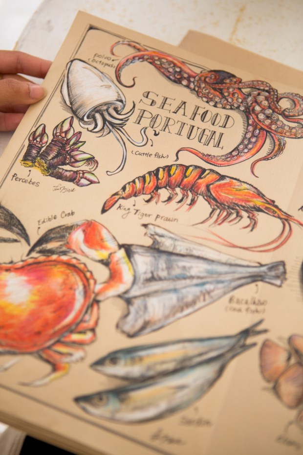 Houve uma primeira versão do mapa, mas quanto mais falava e ouvia as pessoas mais se apercebia do que tinha que corrigir. Viajou para outras cidades (Porto, Aveiro) e percebeu que havia já comida a transbordar do mapa. Foi então que decidiu fazer um pequeno livro/guia de 16 páginas (edição limitada, à venda no Studio Teambox a partir de dia 11) que não pretende ser exaustivo mas apenas ajudar os turistas a orientarem-se no mundo da comida portuguesa (tem, por exemplo, uma página dedicada às muitas formas de se pedir café, da bica ao abatanado, passando pelo cheio e o pingado).