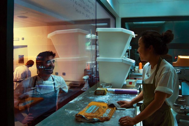 Falta-nos apenas conhecer um elemento fundamental desta equipa: Kiki, tailandesa e mulher de Leonardo, que ele também conheceu no Noma. Está na zona da padaria, porque depois de uma experiência falhada com outro padeiro é ela quem se ocupa desta secção. E, enquanto estica a massa, conta-nos que juntos pensaram “qual seria o próximo passo na vida, o próximo desafio”, ponderaram várias hipóteses e acabaram por se encantar com o Areias do Seixo.