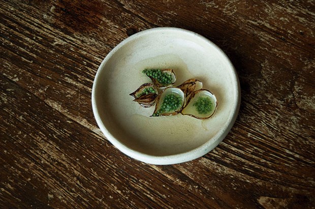 De seguida, um prato com folhas de diferentes variedades de alface, lagostins do rio e pétalas de rosa; um delicioso coalho de leite com caldo de presunto e rebentos de vinha; cebolas novas assadas com sementes de coentro e manteiga de ovelha; choco com vinagrete de perpétuas; espargos brancos assados com água de tempeh (fermentação feita com grão de bico); tendões de vaca com alcachofras e um molho feito com levedura tostada; e o prato de carne, porco com molho de sangue e mizuna (folhas de mostarda japonesa).