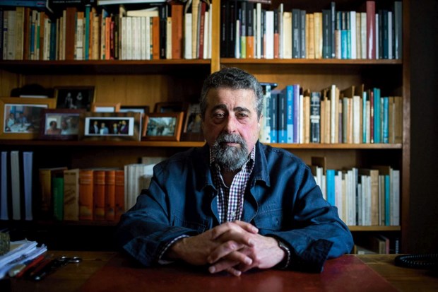 Recebe-nos no seu escritório onde (quase) todo o espaço vital está ocupado por estantes de livros: Lisboa, o tango, a literatura portuguesa organizada por ordem cronológica e, por detrás da secretária onde se senta, os “grandes”, Eça, Camilo, Pessoa.