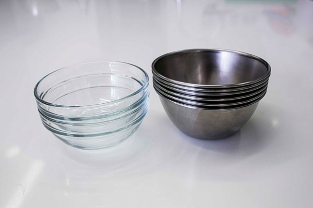 São objectos multiusos. As pequenas são boas para a mise en place, que nos permite ter tudo preparado, com os vários ingredientes descascados e cortados, antes de começarmos a cozinhar. As maiores são boas para fazer molhos e emulsões. As de vidro podem ir ao micro-ondas, as de inox não.