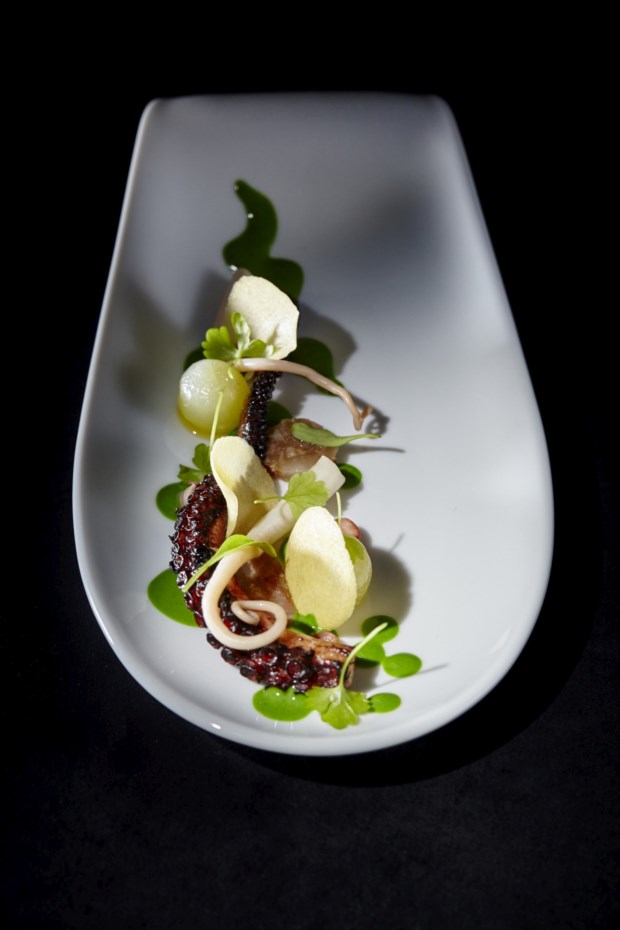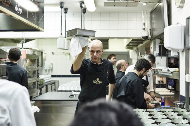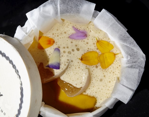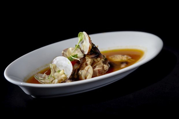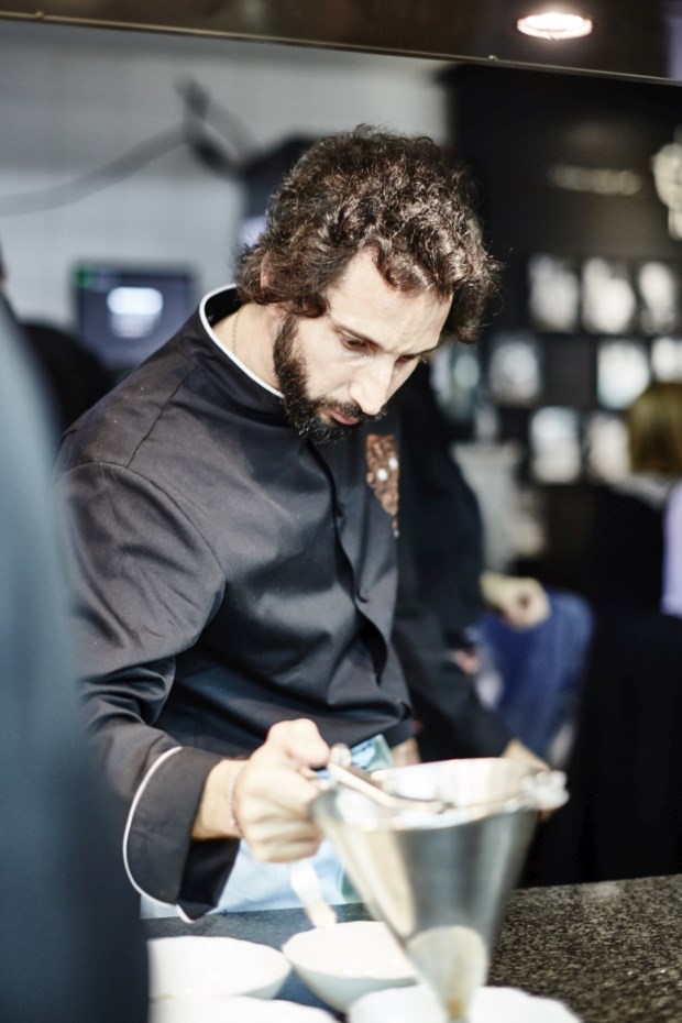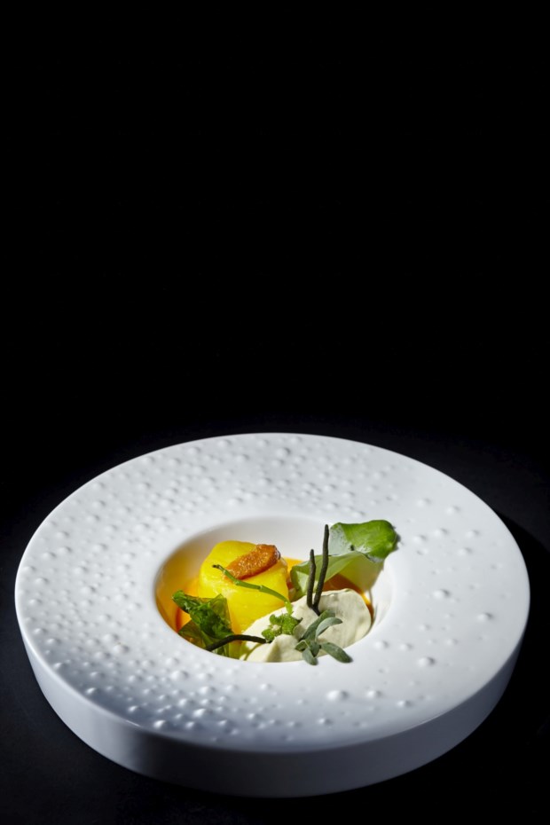 O cozido era um prato de referência em casa dos avós, a Quinta de São José da Bicuda, em Cascais, ainda antes de ele nascer. “Todos os domingos o meu avô fazia um cozido aberto a quem quisesse vir. Chegavam a ser 60 ou 70 pessoas”, conta Avillez. Neste caso, tem “um centímetro quadrado de carne” (papada de porco) e todo o sabor está no caldo. Faz parte da carta do Belcanto, mas no Vila Joya, entre 13 outros, o desafio era ainda maior: “Transportar as pessoas para a minha infância, que provavelmente é também a de muitas delas, em apenas duas colheradas.”