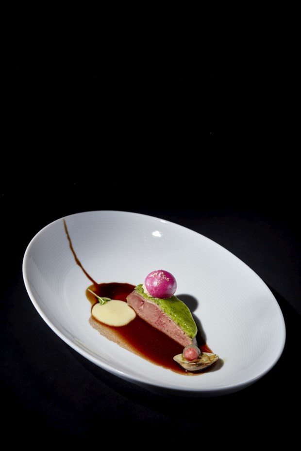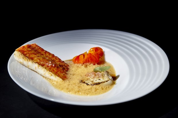“Para mim foi muito claro”, conta. “Pensei no lado materno, transmontano, e usei as alcaparras por causa das azeitonas, já que estamos na altura da apanha delas.” Depois pensou na comida de tacho e de conforto e do lado paterno, ligado ao negócio do peixe, foi buscar a ideia do choco braseado e do salmonete com o molho do assado no tacho. Procurou os sabores da “azeitona muito verde” e “o lado iodado do salmonete”. No final, a ideia principal é a de que se pode extrair o sabor das coisas mais simples como os ossos ou as espinhas.