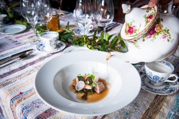 Na Gorreana, Sandro e João trabalharam espadarte e encharéu, lagosta e cracas, combinando-os com a textura líquida de um caldo e a cremosidade de uma açorda. Brilhava o riquíssimo mar açoreano, com toda a sua frescura e vivacidade. A vazia maturada de limousine, acompanhada pelo funcho selvagem, tradicional nas sopas açorianas, representou bem a importante faceta cárnea da gastronomia local.