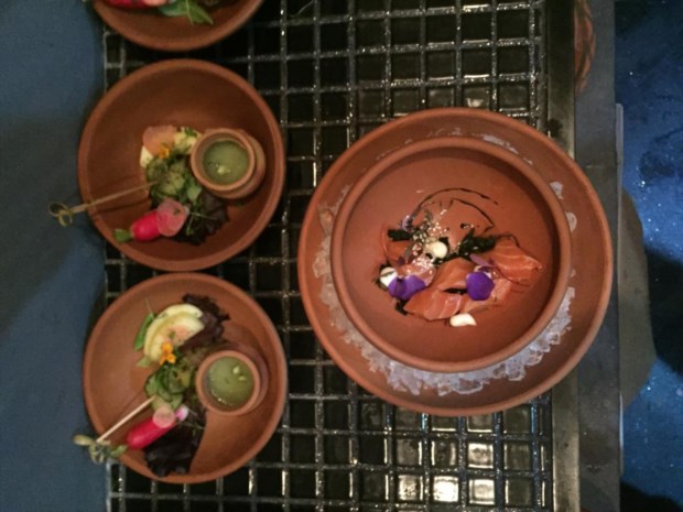 Com o tema "voltar à natureza -os primeiros dias do Homem", o The Bunyadi dispõe de um menu por 69 libras (89 euros) onde são preparados cinco pratos de comida crua, que pode também ser vegan. Salmão curado, salada de algas marinhas, mousse de amoras com coco e chia, espargos e amêndoas salgadas, curgete recheada com flores e tomate, couve-flor com cuscuz e algas, pepino salgado com puré de maçã, sopa de jardim Inglês, crumble de coco e chia, cebola vermelha e melão, bife tártaro com bagas goji… Estes são alguns dos pratos disponíveis, livres de conservantes, servidos em barro e comidos com talheres comestíveis.