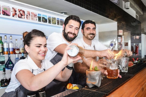 Para lá dos sabores afinados e da frescura e suculência dos produtos, os chefs açorianos voltaram a surpreender pela positiva, desta vez com um ambiente, serviço e empratamento entretidos. Um dos pratos chegou à mesa com o trólei e tabuleiros, como se fosse servido num avião em pleno voo, e a sobremesa teve até um lado de interactividade, sendo os próprios comensais a fazer a preparação final. Sinal de confiança e maturidade, mas também da enorme evolução em termos de técnica e segurança. Quem os viu há apenas cinco anos!