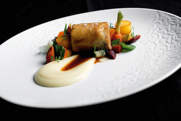 A ideia é “conciliar os nossos sabores com as técnicas mais vanguardistas”. De resto, basta respeitar o produto. “Quando se tem um bom peixe-galo ou lavagante, só temos que lhe enaltecer o sabor.” E é precisamente um peixe-galo acompanhado por espargos verdes e brancos, um canelone de sapateira e espuma de champanhe que apresenta noutro passo do menu Raízes. “Quero chegar aos meus clientes e tocar nessa infância” de que todos nos recordamos, diz. “Com este prato vamos mais para Peniche. Sou pescador, vou muitas vezes à pesca e uma das paragens obrigatórias é num restaurante típico.”