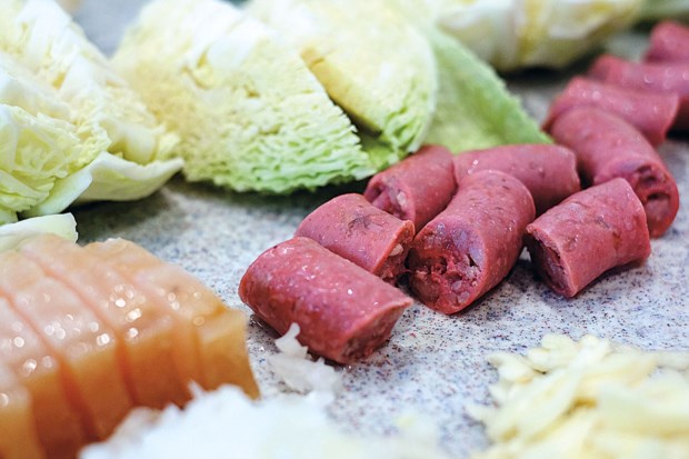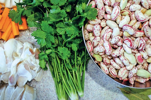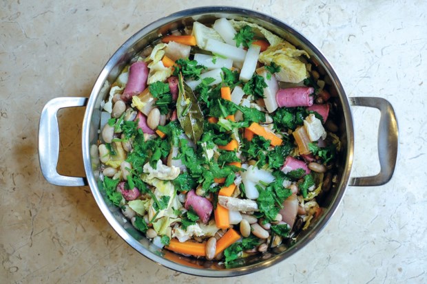 Os ingredientes estão preparados e alinhados num tabuleiro, é tempo de marcar uma hora e iniciar a contagem decrescente. Forno a 250 graus, tacho com as batatas — “descascadas à mão, como as nossas avós”, recomenda —, folhas de louro, bagos de pimenta e cravinho, tudo regado com bom azeite. “Só para aquecer o tacho e as batatas já se gastam 10 minutos. O alho podia ser já, mas é melhor pôr um pouco mais tarde só para não ficar queimado e escuro”, diz, como que dirigindo-se aos leitores.