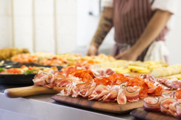 Mas a grande aposta é nos pratos quentes – à medida que levantamos as tampas, somos surpreendidos com ingredientes como o feijão, o chouriço, a batata… Há uma carne de porco à portuguesa e uma caldeirada de peixe.