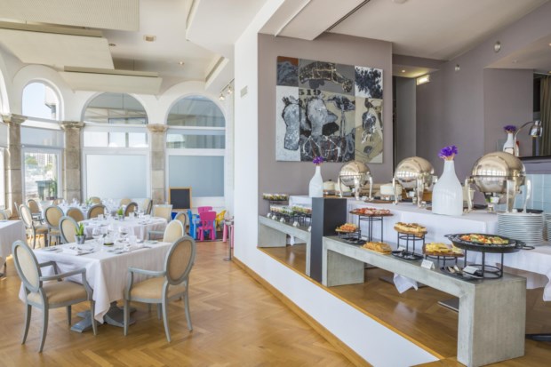 Na sala toda virada para o mar ouvem-se vários idiomas, o espanhol do casal com os filhos pequenos, o alemão de uma família com filhos já adultos, o inglês misturado com o português de um grupo de amigos que serão professores e investigadores em vários cantos do mundo. Cada um levanta-se do seu lugar e vai buscar o que lhe apetece comer. Está tudo incluído nos 25 euros que custa o brunch (excepto as bebidas).