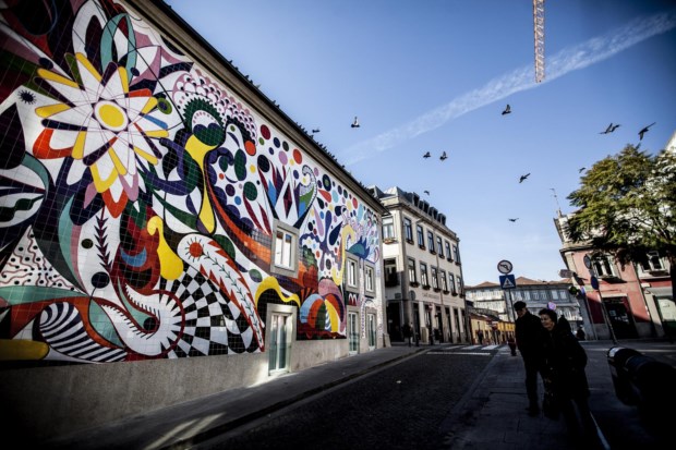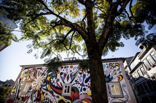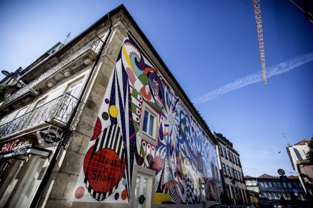 O novo restaurante, especializado em hambúrgueres e batidos, ocupa um prédio inteiro na Praça Guilherme Gomes Fernandes. Em plena Baixa, o edifício dificilmente passa agora despercebido: a fachada foi revestida por um mural de tons garridos, composto por oito mil azulejos pintados à mão. O desenho, idealizado pela artista plástica portuguesa, inspira-se na simbologia da filigrana e dos bordados de Viana do Castelo, numa policromia pop que caracteriza o trabalho da autora.