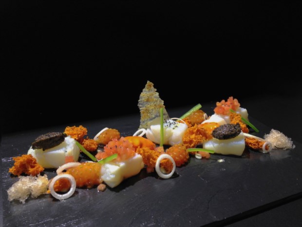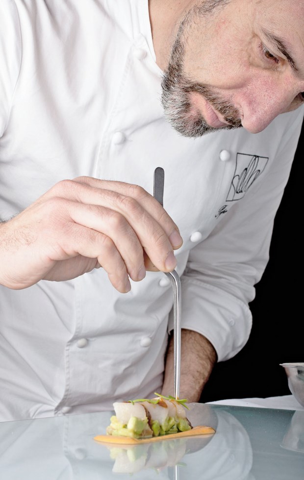 Acabou de mostrar algumas das receitas do seu restaurante, Sollo, em Málaga, projecto em que se lançou depois de ter passado por um estágio no D.O.M, de Alex Atala, em São Paulo. Quando inaugurou o Sollo, em 2015, destacou-se imediatamente pelo trabalho com esturjão e o respectivo caviar, proveniente de Riofrio, Granada, mas agora começou a voltar-se também para outros peixes. O sucesso do projecto foi tão grande que abriu portas em Março e em Novembro recebeu uma estrela Michelin.