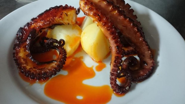 Espantoso é um adjectivo que assenta bem, em português, ao espaço - umas velhas cavalariças, que mantêm a escada de pedra com rebordos arrendondados, para que os cavalos descessem em segurança à zona onde agora se servem as refeições. Mas em língua galega, como em castelhano, espantoso é assustador. E ninguém quer dizer uma coisa dessas depois de provar o polvo à grelha, uma reinvenção da cozinha d'O Dezaseis, baseada no popular polvo à feira galego.