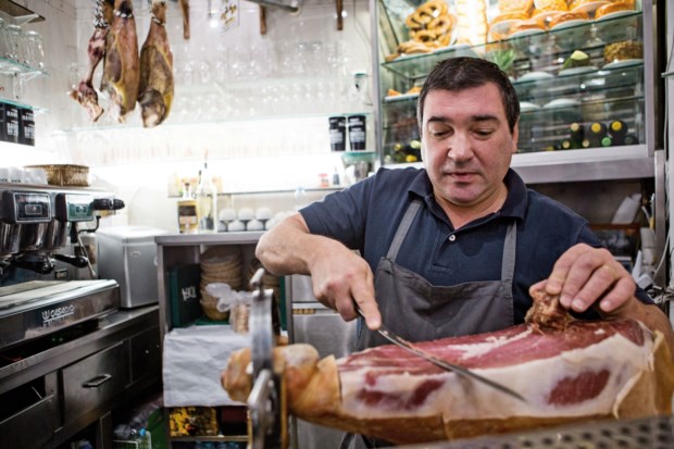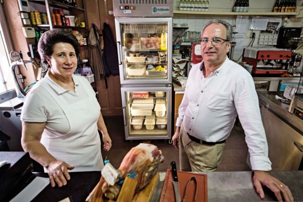 Chegamos ao Zé dos Cornos às dez da manhã e já está instalada a azáfama, com João atrás do balcão a arrumar os queijos de Alpedrinha (Fundão) e a preparar a perna de presunto. O prato do dia é pernil e também já está pronto na cozinha. E, na parede, estão os cornos de boi que levaram os fregueses a rebaptizar a tasca quando José Ferreira, pai de João, os trouxe para aqui.