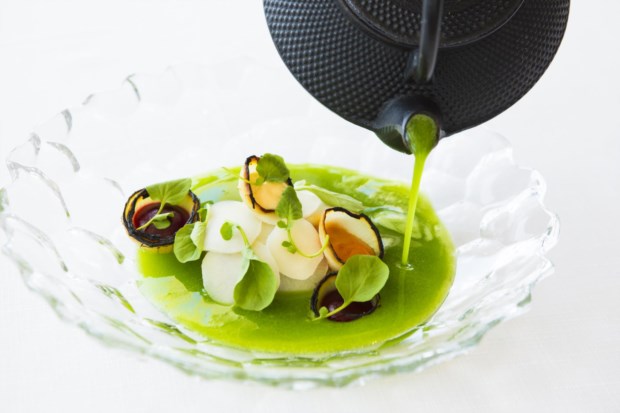 O prato de vidro vem cheio de cor e de espumas, as técnicas utilizadas para o realizar foram muitas, mas o sabor é o de uma sardinhada, daquelas que comemos com os amigos numa noite de santos populares ou em casa da sogra à sombra da ameixoeira. No entanto, estamos no Villa Tamariz Utopia, no Estoril, e a confecção pertence a Mário Cruz.