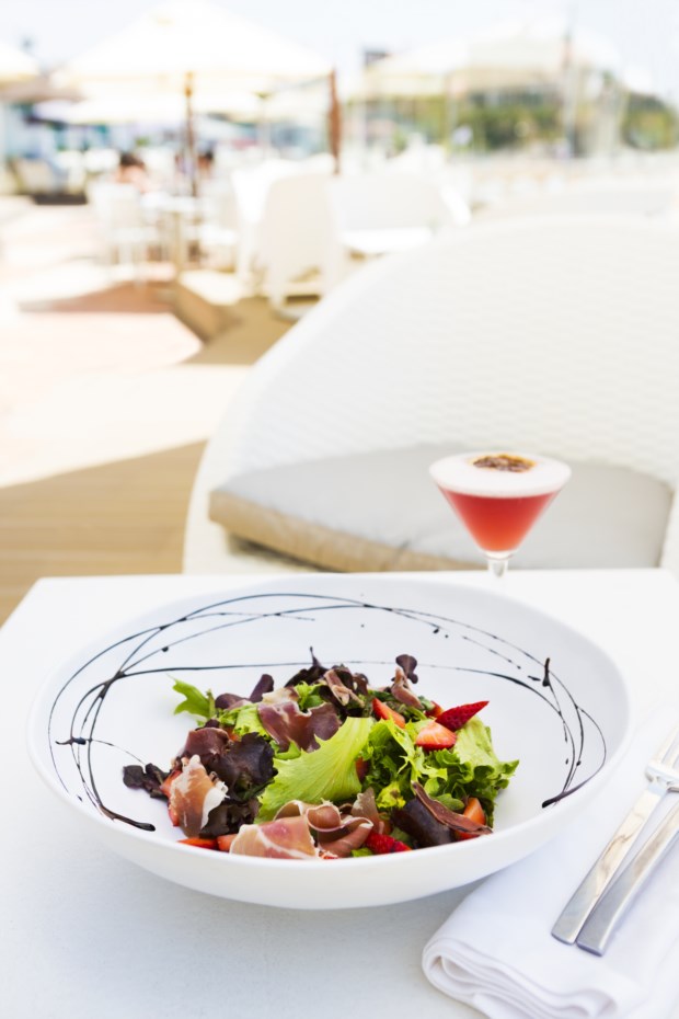 O chef inspirou-se no receituário português para criar a carta de Verão, conta à Fugas. Uma carta que varia do dia para a noite, ou seja, ao almoço é mais descontraída e a pensar nos veraneantes que fazem praia mesmo ali ao lado; ao jantar as propostas podem ser de três, cinco e sete pratos (25€, 35€ e 55€, respectivamente). Cinco foi a sugestão do chef e a Fugas ficou muitíssimo bem jantada porque as doses são generosas. Mas já lá vamos.