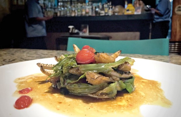 São, aliás, dois desses pratos de peixe que Natacha nos aconselha a provar, depois de outra entrada de patinhas de caranguejo de água doce do Pará com molho de ostra. Vem um "descansadinho", que é um filete de tambaqui, um peixe da Amazónia, aqui servido sobre banana e caldo de tucupi (sumo da mandioca brava). E um pirarucu com crosta de castanha do Pará.