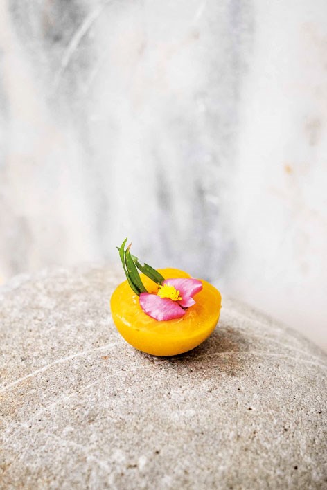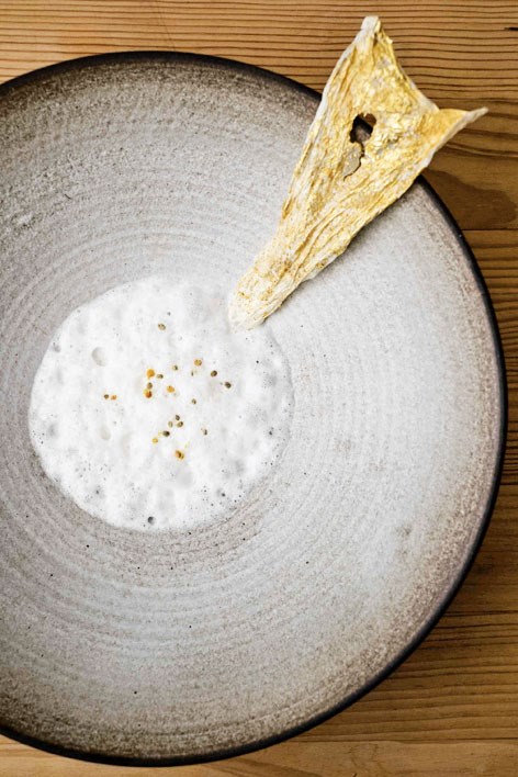 O alimento transformado pode ter a forma de um coração de filigrana feita de refogado de cebola desidratado, ou pode vir em esferas de água que capturam aromas e sabores das quatro estações; pode ser apenas água retirada de uma bilha de barro e servida num copo cuja margem foi percorrida por funcho; ou pode ser um momento, como aconteceu no jantar-tese, inspirado “pela história efémera da ilha açoriana Sabrina que, quatro meses depois de ter sido colonizada, desapareceu” (o prato era composto por pedra vulcânica, inhame, banana, manteiga fermentada, chá verde Gorreana, azeite, pipoca e caviar de pimenta da terra).