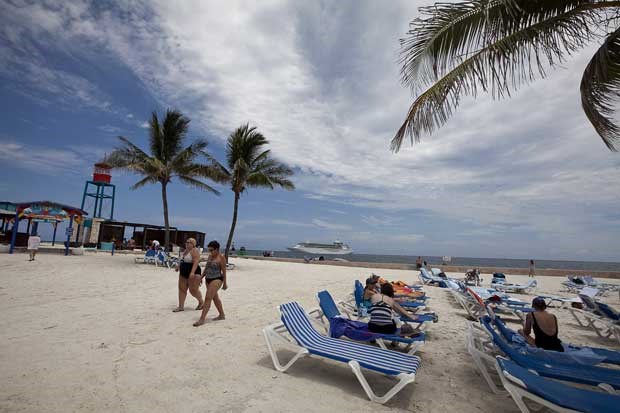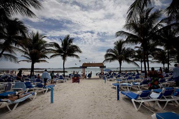 Está vento neste deck 12, mas aqui, numa espreguiçadeira virada exactamente para o sol, estamos (um pouco mais) a salvo da animação lá de baixo. Voltamos a observar a fauna e percebemos que o Monarch of the Seas é um cruzeiro para todos. Há famílias com crianças pequenas e casais apaixonados, mas os jovens barulhentos em busca de animação non stop em alto mar e em terra serão, talvez, o grupo que mais se destaca. Percebe-se porquê: este é um cruzeiro que sai de Port Canaveral à sexta à tarde rumo às Bahamas e está de regresso aos Estados Unidos na segunda pela manhã. Ou seja, é fácil passar um fim-de-semana sob o signo da diversão: sol, praia, música e muita comida e bebida. Ainda por cima, os preços são simpáticos. Posto isto, pensamos que quem nos disse que os cruzeiros são coisa de velhos enganou-nos.