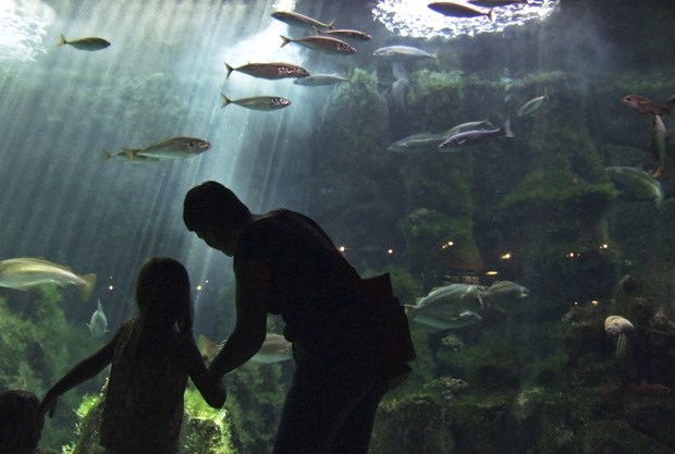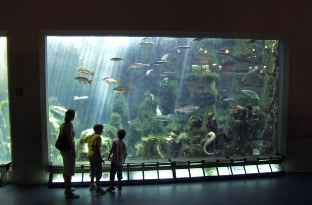 A excitação dos muitos "já chegamos?" e a corrida para a bilheteira dá lugar à observação atenta assim que nos aproximamos dos primeiros reservatórios, dando razão aos que afirmam ser o azul uma cor relaxante. Ou então é o vaivém hipnótico dos cardumes que os obrigam a atentar nas espécies distintas, ajudados por painéis informativos com os seus nomes em várias línguas. Há sardinhas e peixes-rei, bodiões e corvinas, douradas e linguados camuflados no fundo arenoso. O desfile continua ao longo de cinco tanques com enormes congros e sinuosas moreias a rivalizarem no misto de fascínio e medo que provocam às crianças. O que aqui não existem são animais de longitudes exóticas. A sala Maremagnum, que ocupa grande parte do primeiro piso, é inteiramente dedicada às espécies do Atlântico, com especial incidência nos ecossistemas marinhos da Galiza. Por isso, um dos tanques mostra peixes a nadarem entre cachos de mexilhões, tal como acontece nas rias galegas, de onde sai a maior produção mundial destes bivalves.