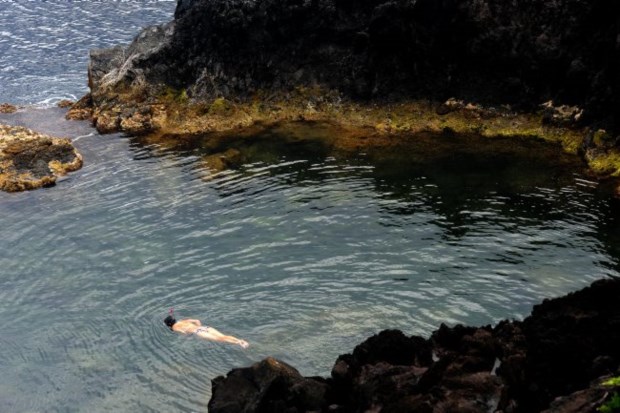 Por enquanto vamo-nos familiarizando com Santa Cruz das Flores, a vila primeiro, o concelho depois (3789 habitantes, contaram os Censos 2011). Na Avenida dos Baleeiros, o Buena Vista Caffé, com vista de mar privilegiada, está com pouca freguesia. Contamos apenas duas mesas ocupadas - numa delas, duas mulheres francesas, mãe e filha, talvez, estão a ler e dir-se-iam indiferentes ao contexto. Daqui a nada, porém, é vê-las descer as escadinhas que levam às piscinas naturais de Santa Cruz e entrar na água tépida que se abriga entre as rochas. Devidamente equipadas com óculos de mergulho, vão passar vários minutos a nadar com os peixes - e a fazer inveja a quem as vê de cima. As piscinas, não temos dúvidas, serão um dos principais cartões- de-visita da vila onde vivem 1724 florentinos.