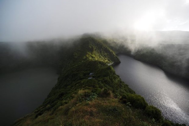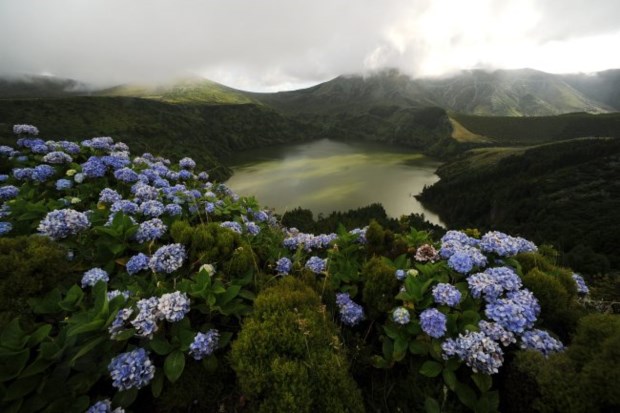 E mais um cliché, que o povo nunca se engana: quem espera sempre alcança. Nós esperámos, por vezes desesperámos, mas ao quarto dia as Flores colaboraram e mostraram-se aos nossos olhos de principiantes. Já tínhamos a vista cheia de pastos verdes, de hortênsias azuis e rosadas, de fajãs dramáticas a cair para o mar, de montes a recortar o céu carregado - mas faltava-nos a (quase) fantasmagoria das lagoas para compor o cenário perfeito. Como num passe de magia, a escassas horas de levantarmos voo, a névoa levantou-se também e deixou-nos entrar no reino encantado da Funda e da Rasa, da Negra e da Comprida, da Lomba e da Branca.