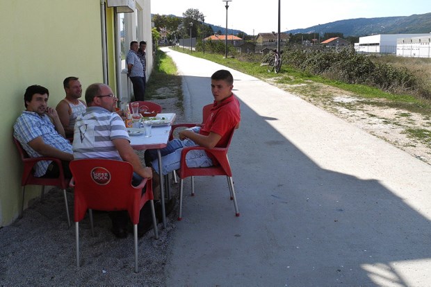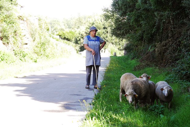 Mais invulgar é sermos confrontados com um grupo de sete homens - quase todos reformados, na casa dos sessenta anos e oriundos das Caldas das Taipas (vila do concelho de Guimarães, localizada a várias dezenas de quilómetros) - a jogar a petanca. Sim, uma coisa esquisita em que se lançam pequenas bolas umas contra as outras e que, supostamente, tem a sua origem na região das catalunhas espanhola e francesa. Não, não eram emigrantes. "O pretexto é vir para aqui pescar truta. Mas agora até é proibido", conta Alberto Oliveira, 63 anos, reformado de uma fábrica de cutelarias de Guimarães, enquanto vira as costeletas de vitela e de porco e os enchidos de sangue que assavam nas brasas a aguardar o fim do jogo. Ciclistas? "Nem vê-los. Só passaram aqui umas mulheres a pé", acrescenta. Está visto que deviam ser as mesmas da almoçarada nos moinhos.