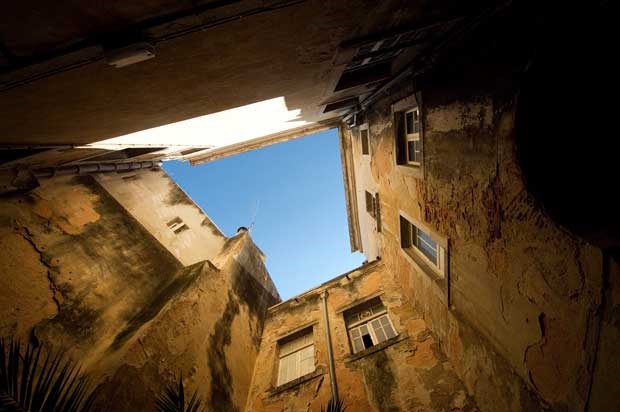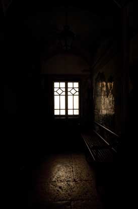 Seria um segredo bem guardado se a porta não estivesse escancarada a toda a hora, para mais em pleno centro de Lisboa. O prédio identificado pela placa Edifício Amparo na fachada principal e uma esquadra de polícia no piso térreo é o antigo Colégio dos Meninos Órfãos, também conhecido como Recolhimento do Amparo e Colégio de Jesus. Fica no Martim Moniz, nas traseiras do Centro Comercial Mouraria. Lisboa é assim: uma das peças de arquitectura mais abomináveis da cidade encontra-se paredes-meias com uma preciosidade descurada pela edilidade, desconhecida da maioria dos lisboetas e certamente ignorada por todos os guias turísticos.