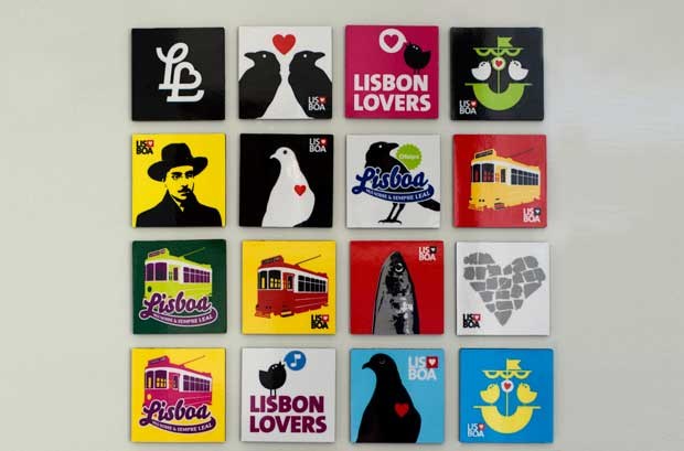 A Lisbon Lovers propôs-se desde início a apostar num design original e a criar uma linguagem identificativa da marca. Começaram pelas tonalidades mais urbanas como o preto, o branco e o cinzento, com apontamentos em vermelho, mas hoje, a paleta alargou-se, porque “Lisboa é cor e é luz”. Há ímanes com Fernando Pessoa em fundo amarelo, crachás e blocos com eléctricos berrantes, e nenhum deles traz a inscrição “Lisboa” – as imagens falam por si.