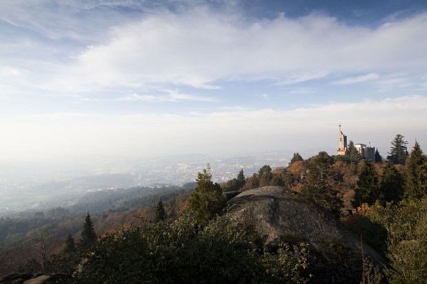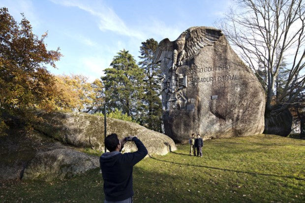 Mas é o santuário projectado por José Marques da Silva (1869-1947) a principal atracção arquitectónica deste lugar também marcado pela profusão de megalitos e grutas. O arquitecto portuense (Estação de São Bento e Teatro São João) desenhou o templo em 1930 (as obras começaram no ano seguinte e só acabaram em 1947), um edifício que é "uma profissão de fé no granito" e uma obra de "volume massivo e depurado", como o descreve André Tavares no seu livro Em Granito - A Arquitectura de Marques da Silva em Guimarães. Na descida à cidade, o visitante poderá depois ver de perto mais duas das várias obras que o arquitecto aqui projectou: o edifício da Sociedade Martins Sarmento (1900-08), que é "verdadeiramente a obra parisiense e de expressão Beaux Arts de Marques da Silva" - diz André Tavares à Fugas -, e a fachada do mercado municipal (1927-42), actualmente em estaleiro para a transformação no Centro de Artes José de Guimarães, mas onde é ainda notória a elegância das suas linhas.