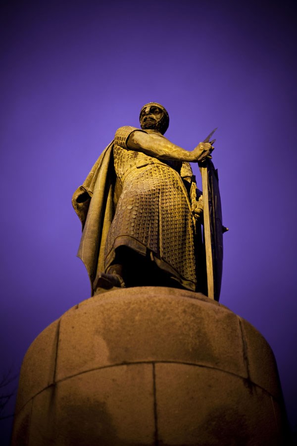 Descendo a colina em direcção ao centro urbano, temos a estátua de bronze de D. Afonso Henriques do escultor Soares dos Reis (1887), cuja figura ajudou a formar o imaginário histórico de muitas gerações de portugueses - já agora, vale a pena compará-la com a nova estátua de pedra de João Cutileiro (2001), no Largo da Misericórdia.