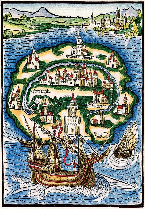 A ilha idealizada por Thomas More (1478-1535) foi inspirada nas descobertas do Novo Mundo e projectada como uma crítica veemente aos declives sociais da Inglaterra do seu tempo. More descreve um pedaço de terra de extensão razoável, situada algures ao largo da América Latina, organizado em cidades-estado, governadas democraticamente. Não há pobreza, mas também nenhuma riqueza ociosa, o luxo foi banido ao mesmo tempo que a pobreza. Depois há costumes hoje correntes, mas estranhos para a época, que levaram até a duvidar das intenções do autor, como seja os habitantes de Utopia promoverem a eutanásia e a liberdade religiosa.