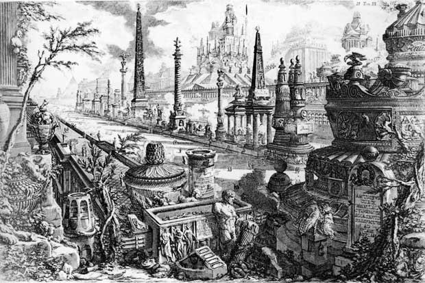 O princípio segundo o qual "experimentar-os-sítios-em-primeira-mão-é- sempre-melhor-do-que-ouvir-falar-deles" é uma espécie de regra de ouro das viagens e dos viajantes. Mas não há regra sem excepção, que neste caso se chama Giovanni Battista Piranesi (1720-1778). Uma excepção logo experimentada por Goethe quando chegou a Roma e percebeu que, por mais magnífica que a Cidade Eterna se mostrasse aos seus olhos, mesmo assim ficava aquém das expectativas criadas pelas Vedute de Piranesi.