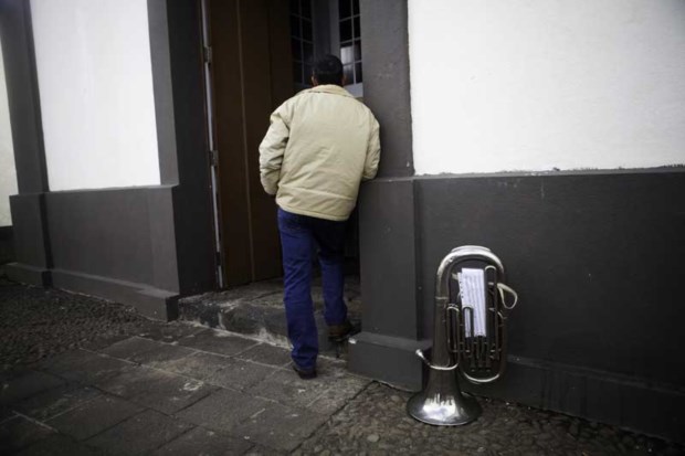Está tudo a postos, a filarmónica começa a tocar. Muito desfalcada, cada vez aparecem menos músicos. Já foram muitos, mas agora são só nove. "Já fizemos um funeral sem trompete", lamenta a do clarinete. E o do bombo acrescenta, com ressonância trágica: "Para mim é a última vez. Estou farto. Nunca mais venho."