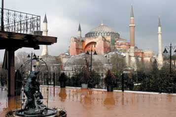 Mesmo ao lado do Topkapi situa-se a praça de Santa Sofia. Aí esteve, sempre, o centro. Ágora grega, Fórum romano e hipódromo bizantino, ainda hoje aí se concentra grande parte dos monumentos de uma História milenar. Da belíssima cisterna romana ao palácio do grão vizir, passando pela mesquita azul ou pelos obeliscos transladados do Egipto, a sugestão é que o visitante se concentre na mesquita que um dia foi igreja e se dedicou à sabedoria, ou seja, a Santa Sofia. Ela precede, em mil anos, as extraordinárias obras de Sinan, o arquitecto das mesquitas e minaretes que desenham o topo das colinas de Istambul. No seu interior disponha de todo o tempo. Aí se podem perceber algumas das diferenças entre decoração cristã e muçulmana. Com efeito, ambas usam materiais ricos. Mas enquanto a primeira os utiliza para diminuir a Humanidade ante a grandeza do Criador, a segunda faz da discrição um apelo ao recolhimento, ou seja, à relação directa entre crente e Alá. Estas duas almas ainda hoje coexistem na Turquia, um país inventado sobre os escombros do Império otomano nos anos que se sucederam à I Grande Guerra. Surpreenda- se ainda o leitor: tal como o califado no século XIX, também os militares que fizeram nascer a Turquia tinham os seus olhos postos na Europa. Era daí, da Europa, que vinham as ideias socializantes, a igualdade entre os sexos e a separação radical entre Estado e religião. Era até daí que vinha a ideia de que seria a ferro e fogo que se poderia impor o progresso... Istambul, como Lisboa, é uma cidade de luz. Tal é a magia que os reflexos das águas impõem à obra dos homens. É também a cidade dos momentos em que o Sol se esconde e em que o mais empedernido dos corações se enternece.