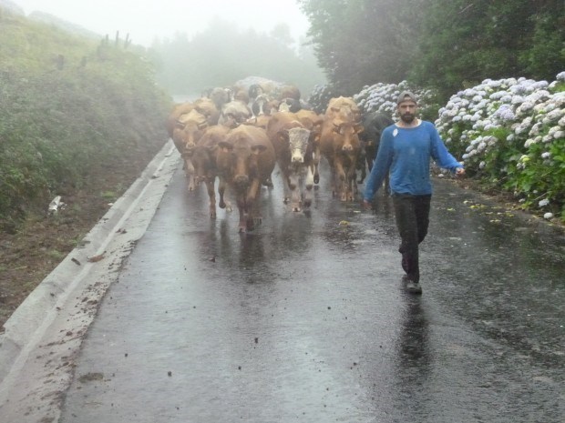 E por entre um encontro e outro, muito andarilho, muita paisagem. E muito suor. Até agora “o mais difícil” foi a humidade e o calor do Verão da Terceira e de São Jorge, numa meteorologia açoriana já de si de humores imprevisíveis, com chuva, vento e nevoeiro. Mas o esforço é geralmente recompensado por vistas idílicas e lugares surpreendentes. A “beleza lunar” do Algar do Carvão na Terceira, a “tranquilidade bucólica do interior de Santa Maria e a disposição espaçada das casas marienses entre o verde”. Em São Jorge, a Fajã dos Vimes, a Fajã dos Cubres e a Caldeira de Santo Cristo. “É provavelmente um dos locais mais mágicos que visitei até agora”.