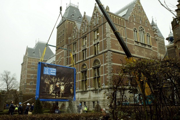 AMESTERDÃO. A obra-prima "A Ronda da Noite" de Rembrandt a passear-se frente ao Rijksmuseum em obras Michael Kooren/Reuters