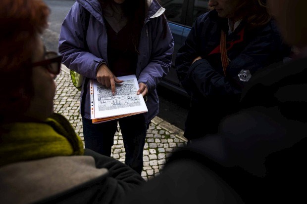 Uma planta quinhentista da cidade de Lisboa torna-se uma espécie de mapa do tesouro. Inês aponta com o dedo a muralha fernandina e indica o percurso que se vai realizar. O grupo segue, então, na direção de Alfama. O objectivo é conhecer os limites orientais da velha capital.