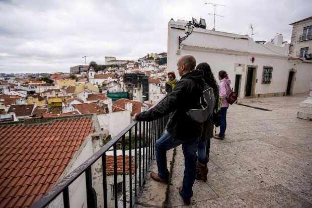 Raquel Policarpo e Inês Ribeiro, guias deste passeio e únicos elementos da tripulação, vestem t-shirts cor-de-laranja. É a cor que as caracteriza neste universo cada vez mais polvilhado de agências de animação turística em Lisboa. Pés e imaginação ao caminho, iniciam a viagem pela cidade medieval e quinhentista, que começa ali mesmo, no Campo das Cebolas, e terminará séculos à frente, no miradouro da Graça.