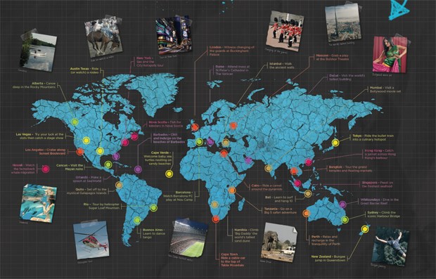 A agência de viagens, sediada em Londres e com presença em 46 países, lançou o concurso The Biggest Baddest Bucket List com prémio igualmente aliciante para os viajantes: “seis meses, seis continentes” (a América é dividida em Norte e Sul), “com todas as despesas pagas”. O maior atractivo? Os destinos não são pré-definidos mas escolhidos pelo vencedor.