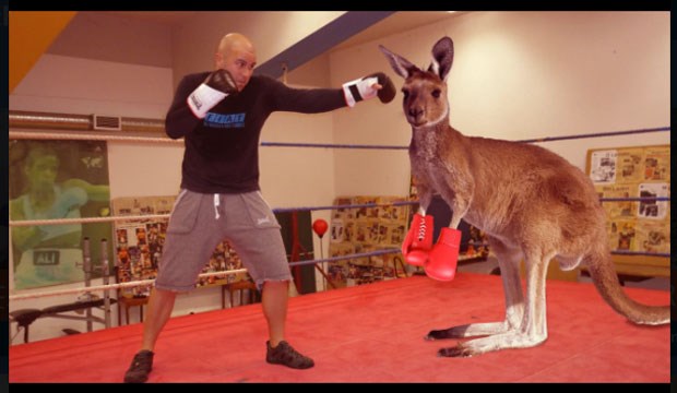 João Ribeiro e o seu "parceiro" de boxe, um canguru DR