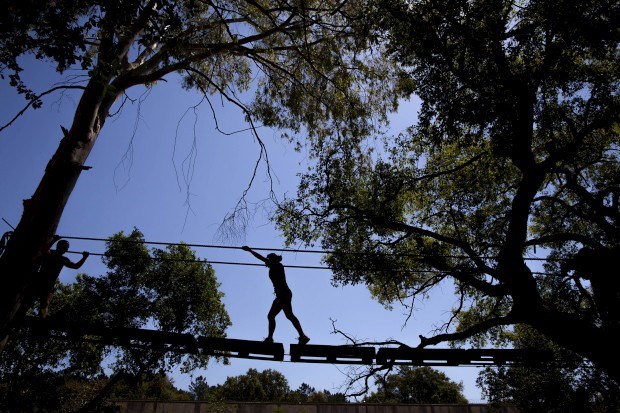 Ainda assim, quando nos dizem que “não é preciso ir a um ritmo muito elevado”, avançamos confiantes e sorridentes. Falam-nos em espírito de equipa (“Se o grupo não funcionar, o obstáculo não será transposto”, alerta Brito) e no verdadeiro desafio que é a coragem de tentar. “Se não consegue em três, conseguirá em seis horas; se não vai a correr, irá a gatinhar, a rastejar. Mas chega lá.”
