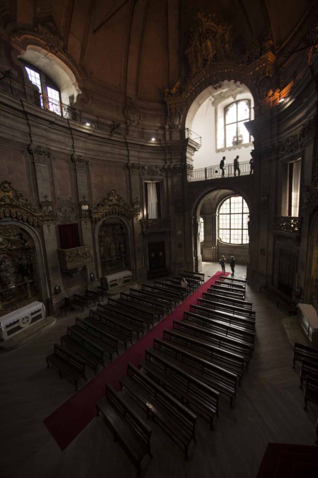Germano Silva considera que "onde o génio de Nasoni é mais perceptível é na concepção da nave oval da igreja" – "uma das únicas ovais em Portugal, que, pela novidade, rapidamente foi exportada para os territórios ultramarinos", assinala Manuel Montenegro –, "coberta de uma grande abóbada, uma solução pouco vulgar, se não mesmo inédita, no contexto da arquitectura religiosa portuguesa e que remata com o majestoso altar-mor, da autoria do mestre-pedreiro e arquitecto Manuel dos Santos Porto, concebido ao estilo Luís XV e em cuja construção se utilizaram mármores de quatro cores, provenientes de Pero Pinheiro, nos arredores de Lisboa".