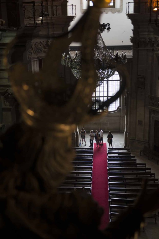 O interior do templo – cuja construção decorreu entre as datas que estão inscritas em duas pias de água benta: 1732-1750 – é, de resto, marcado por uma especial elegância, que contrasta com um exterior de grande austeridade, uma "marca da tradição portuguesa por contraposição com a italiana", diz Manuel Montenegro.