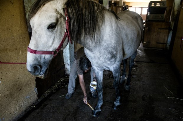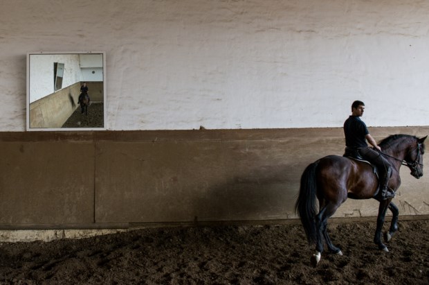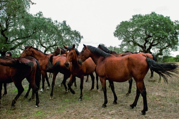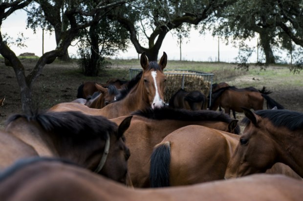 Tudo começa pelo desbaste dos animais (um trabalho para suavizar os movimentos do cavalo, habituá-los ao contacto com o homem, a aceitar o seu peso nos andamentos), a partir dos três anos, altura em que são recolhidos dos campos. No Pátio D. João VI encontra-se o maior centro de desbaste da coudelaria, com 70 boxes e um picadeiro coberto. É aqui que encontramos os três equitadores que, quando não têm aulas para monitorar, se dedicam ao desbaste e ensino dos cavalos — há alguns espelhos colocados estrategicamente nas paredes, para os cavaleiros avaliarem a postura dos animais. Aos campos (são 800 hectares no total), vamos em busca da eguada. Percorremos trilhos quase invisíveis, passamos cancelas — o ritual é habitual: abrir e fechar a cancela, sempre —, observamos a erva parda e a natureza vestida de Outono. “Há veados, gamos, javalis, lebres”, enumera Francisco Beja, mas não vemos nenhum. Nesta manhã, até as éguas também parecem esquivas, mas apenas nos trocaram as voltas e acabamos por encontrá-las junto à entrada — junto às manjedouras, onde se acumulam fardos de feno. “Ouviram o barulho do carro e vieram para aqui”, explica Francisco. São dezenas, todas castanhas, e ele conhece-as pelo nome (atribuído pelo ano de nascimento e o nome do pai, a primeira letra da primeira e segunda sílabas, respectivamente). “Sou eu que as selecciono, vejo crescer, oriento a inseminação”, justifica. Enjeitada, Claque, Babilónia, Donjela, Beringela, “filha do Rubi, que foi aos jogos olímpicos, um dos melhores lusitanos de sempre, ferro de Alter”… — estão aqui as mães de todos os cavalos que saem de Alter.
