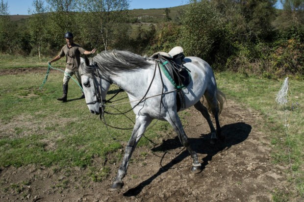 Em Castro Laboreiro essa é quase uma exigência dos turistas estrangeiros — não tanto dos portugueses. “Eles querem limpar os cavalos e os estábulos, querem ver o tractor…”, refere Pedro Alarcão. Antes de montar, querem aparelhar os cavalos. É um ritual importante, afirmam as visitantes: “Para conhecer o cavalo e para ele nos conhecer”. Vão falando com os animais enquanto os escovam, limpam os cascos, colocam a manta e a sela, os estribos e os arreios. Quando é hora de partir, a comitiva vai rodeada pelos cães da casa que acompanham o percurso — gatos e burros (para burricadas) completam a família Ecotura. Vão lusitanos e garranos. Uma mistura desde sempre assumida pelos proprietários, que procuram ter uma representatividade boa das duas raças. As cavaleiras aprovam e ressalvam o carácter especial dos cavalos daqui — “são muito diferentes”, dizem, “na Alemanha nunca poderíamos montar um garanhão, por exemplo”.