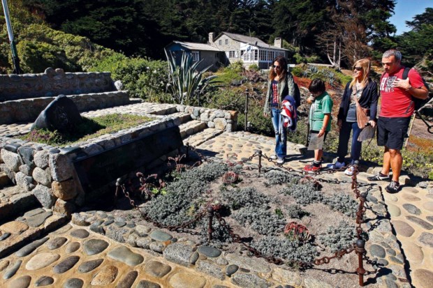 Primeiro há uma camada espessa de relva, e depois flores a despontar. Na cabeceira estão os nomes dos amantes. Ao lado, um caminho de pedras rugosas, degraus, um jardim que Neruda quis que fosse selvagem. (Alguém imagina o poeta Neruda a preferir um jardim de buxo?) Em frente, o mar. A casa fica na parte mais alta do jardim, tem vários módulos, objectos inesperados (como uma pequena locomotiva — como terá ido ali parar?), e chama-se Isla Negra. Não é uma ilha, apesar do nome, mas fica numa costa bravia, junto a um mar insubmisso, e de certa maneira forma uma ilha.