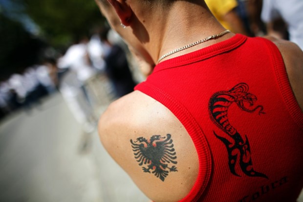 Do lado esquerdo do jornalista está sentado um kosovar-albanês e do lado direito uma kosovar-sérvia. Curiosos com o passageiro do meio, decidem apresentar-se. Os dois falam entusiasmados do regresso a casa, das saudades. Vão de férias por uma semana. A Suíça é um dos principais destinos da diáspora kosovar. Oito dos jogadores da selecção suíça são de origem albanesa. Quando as duas selecções jogam, muitos kosovares dizem que se trata de um jogo Albânia contra Albânia.