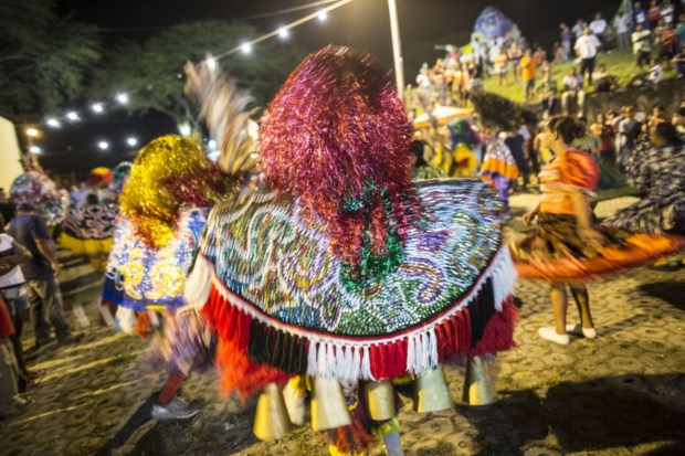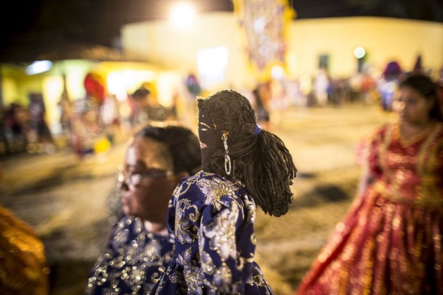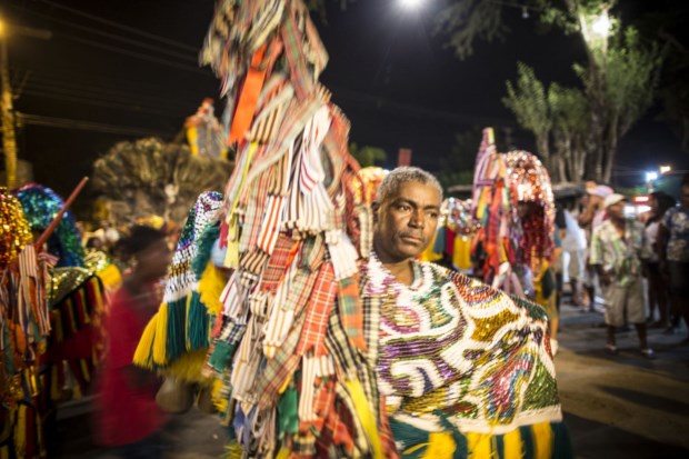 Veja-se o caso do Homem da Meia-Noite. Esta figura é claramente inspirada na tradição portuguesa dos Zé Pereira. Em linguagem nortenha, o Homem é um gigantone. Ou um cabeçudo. Bem vestido (este ano levará as cores do Brasil, em homenagem à Copa do Mundo), com um dente de ouro a sublinhar a sua condição próspera, esta figura faz parte do Carnaval de Olinda desde 1932. Os registos avisam que quando o Homem sai à rua há uma espécie de delírio metafísico — difícil de explicar, como tudo o que diz respeito a estas festas. Com tanto sucesso, acabaria por se tornar obrigatório encontrar companhias apropriadas a semelhante personagem. Foi assim que nasceu a Mulher do Dia, um horário bem mais politicamente correcto.