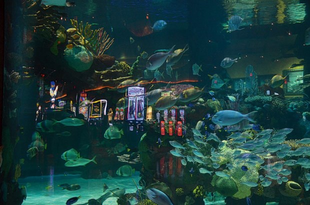 O casino, cuja entrada é marcada por um gigantesco aquário com peixinhos de várias cores e formas, esconde uma gigantesca loja de artigos para caça, pesca e armas, com divertimentos incluídos. Casos de um tanque para a prática de pesca desportiva, de um recanto para o tiro ao alvo com luz – não acertei em nenhum – ou salas para a prática de tiro com munições reais. Mas para as usar há que levar a própria arma e munições. E essas são de guardar: “Desde que o senhor de pele castanha”, diz o homem que está atrás do balcão e que claramente não depositou o seu voto em Obama, enquanto passa com os dedos de uma mão pelas costas da outra, “está na Casa Branca que as pessoas passaram a guardar tudo em casa”. Um pouco por todo o lado da loja se encontram frases que defendem o armamento dos cidadãos, assim como o seu direito em usá-lo.